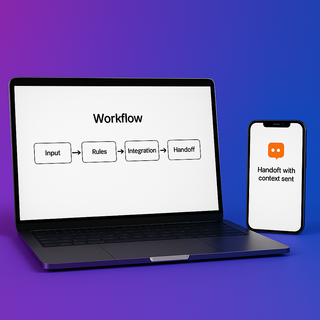 Convierte un proceso real (ventas, soporte u operaciones) en un agente IA que entiende tus reglas, usa tus datos y se adapta a tus métricas. Diseñado contigo, no sobre ti.